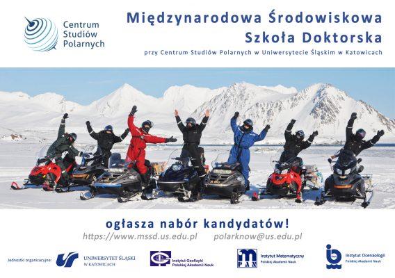 Międzynarodowa Środowiskowa Szkoła Doktorska przy Centrum Studiów Polarnych w Uniwersytecie Śląskim w Katowicach (MŚSD) zaprasza do aplikowania na studia doktoranckie! DOKUMENTY: https://www.mssd.us.edu.pl/kandydat-mssd/dokumenty/ PROPONOWANE TEMATY ROZPRAW DOKTORSKICH: https://www.mssd.us.edu.pl/kandydat-mssd/proponowane-tematy/